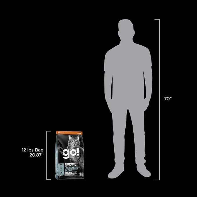 Go! Solutions Digestion + Gut Health, Dry Cat Food, Chicken Recipe with Ancient Grains, 12 lb Bag