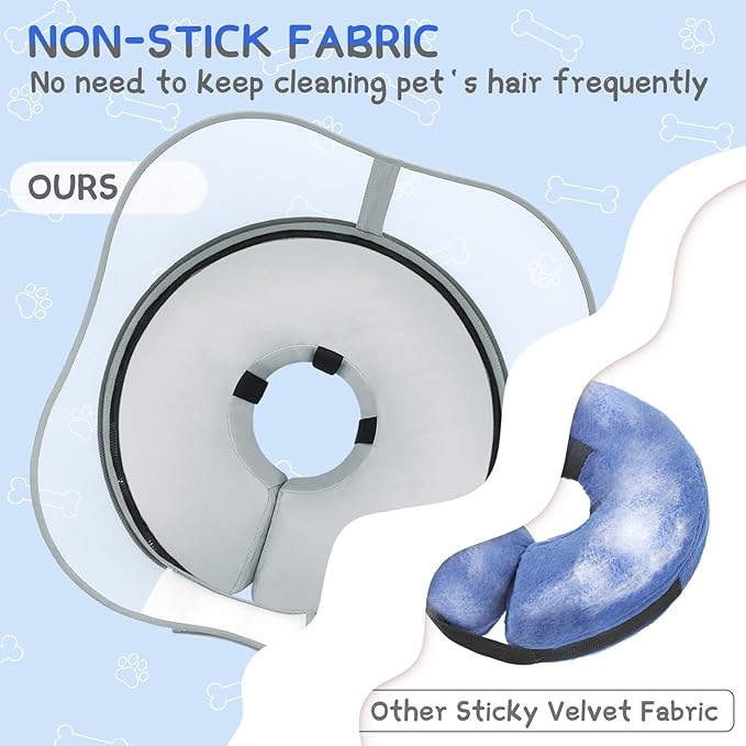 - Easy Maintenance with Non-Stick Fabric - Unlike other velvet dog inflatable neck collars, our dog e collars is wrapped in an upgraded non-stick fabric on the exterior, significantly reducing the need for frequent cleaning due to pet hair. The convenience of a zippered removable cover allows for easy washing, ensuring the dog surgery collar stays fresh and hygienic.