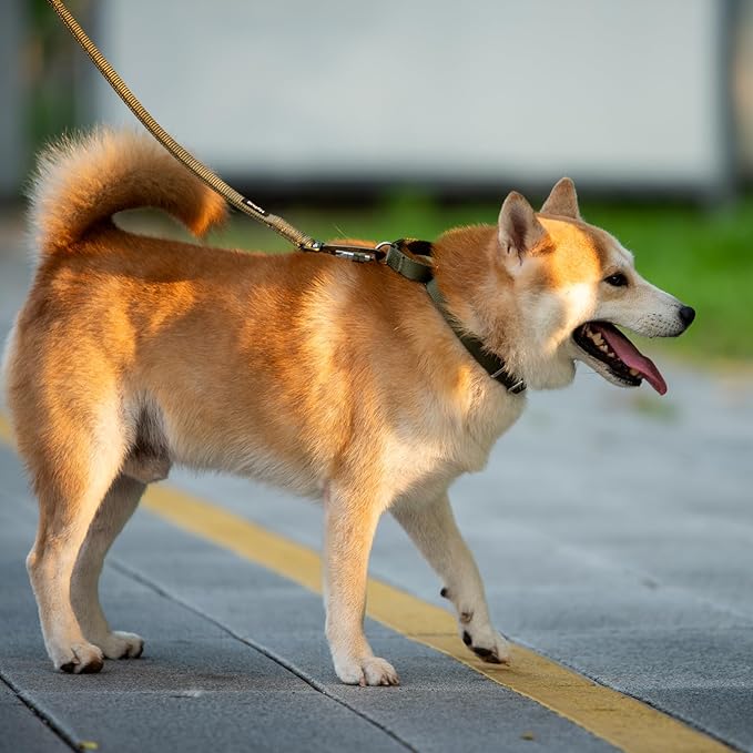 - 1. Martingale style collar without quick release buckle. This heavy duty collar slips easily over the head and gently tightens when pulled to anti escape. The limited closure ensures the collar is not too tight, providing gentle control during walks or training.