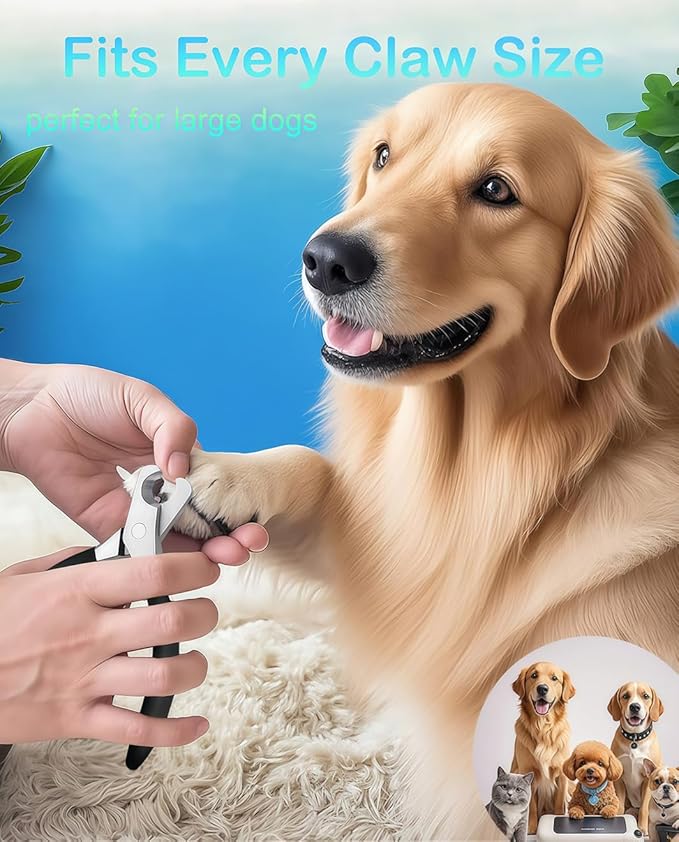 - *Fits Every Claw Size - Dog nail clippers for large dogs, 0.83-inch wide jaw opening, trims giant breeds and tiny claws. One clipper handles all pets in your home.