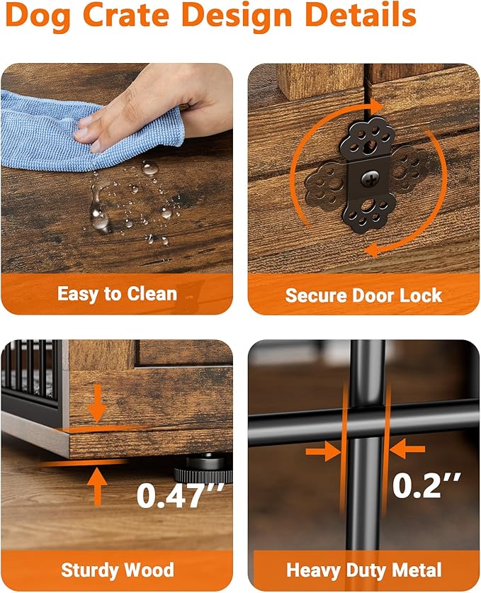 - 🐕【Easy Installation】The large dog crate furniture comes with all the necessary hardware and tools. By following the installation instructions, you can easily and smoothly assemble the furniture dog crate.