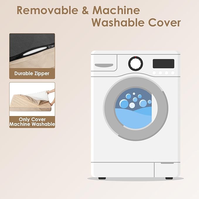- CARE INSTRUCTIONS: Zippered removable cover is machine washable. Tumble dry on low heat. DO NOT BLEACH. DO NOT IRON. Please note that the inner foam is not washable. After receiving it, leave it for 24-48h for rebound.