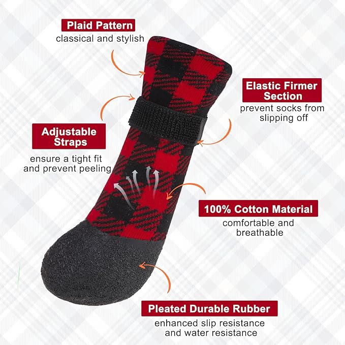 - CONVENIENT & FUNCTIONAL: Our grip dog socks have adjustable hook and loop straps for easy adjustment and to prevent the socks from falling off. If you don't want to wash your dog's feet when you come home from a night out, you can put these dog socks on your dog and they'll be a soft pair of dog shoes too!