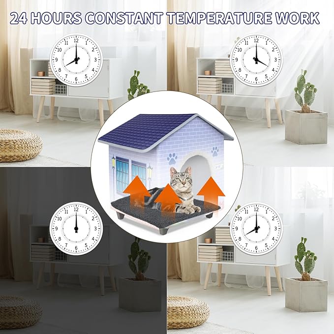 - 【VALUE PACK】---Include:1pack cat heating pad and 1pack sturdy cat house.Provide a one-stop cat house, which can provide warmth suitable for cats in winter. In the spring and autumn, you can take out the heating pad and give the cat a nap.