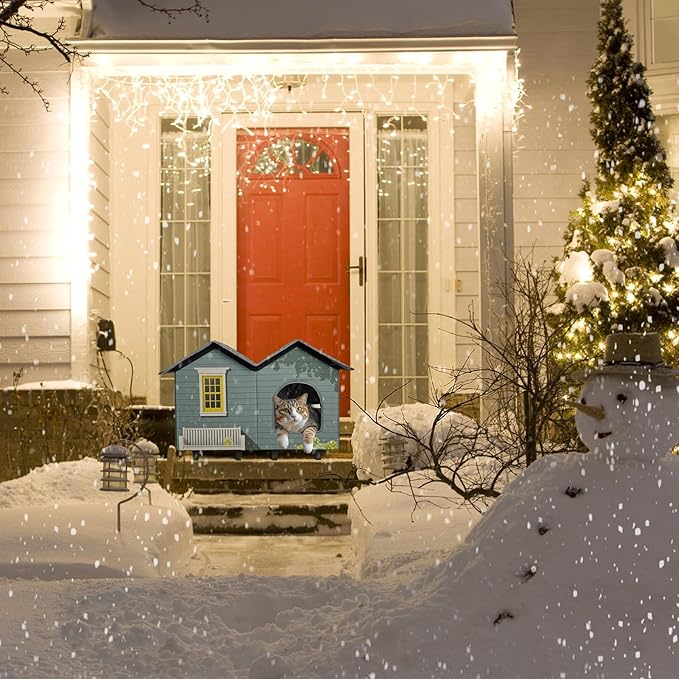 - 【EASY TO ASSEMBLE】---Our heated cat house is very easy to assemble in minutes, It is perfect for the porch, garage or even barn- sheltering your kitty from outside temperatures. Our unique elevated cat house would make a perfect gift for any cat lover!