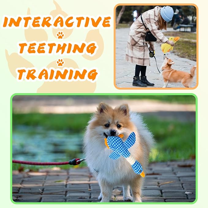 - 2 Pack Squeaky Plush Duck Combo: The set includes 2 squeaky dog toys, each featuring built-in squeakers that keep your pet entertained and cater to their natural chewing instincts, Ideal for stress relief and fun playtime
