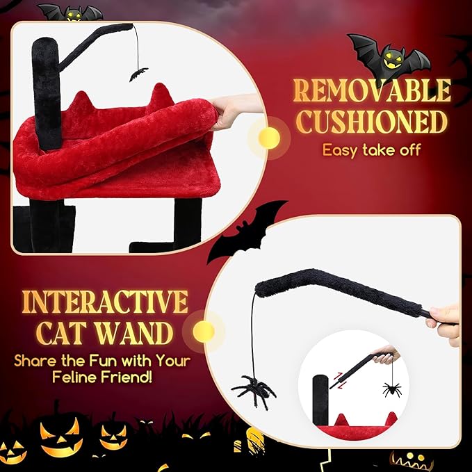 - GOTH CAT TREE ENHANCES AESTHETICS: The F50 goth cat tree features a unique gothic design with a striking black and red color scheme, adding personality and charm to your home while providing a stylish habitat for your cats