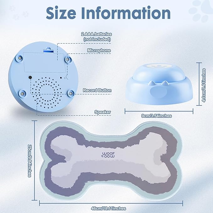 - 【Simple Activation and Functionality】These recordable buttons are easy to use—just insert two AAA batteries (not included) and press to record any command. Our talking dog buttons can be placed on any flat surface, making them great pet buttons for communication. Whether you're training a dog or even using them as cat buttons for communication, they're built for versatility.