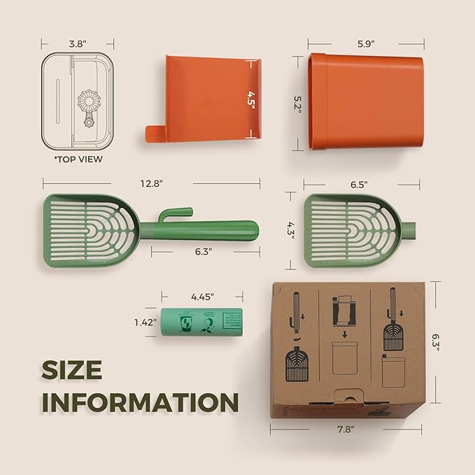 - ONE-STOP STORAGE FOR ALL YOUR SCOOPING ESSENTIALS - 1 roll of degradable trash bag is included in the set and a storage space in the litter scooper holder. The bags included fit the size of standard household trash cans. Features a swift and easy-to-use drawer-like compartment for garbage bag storage, making trash disposal more convenient. Holds up to 3 rolls of standard garbage bags. You might also consider taking this kitty scooper with bag when traveling.