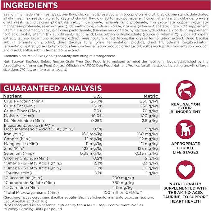 NutriSource Seafood Select Grain Free Dry Dog Food, Salmon and Menhaden Fish Meal, 12LB