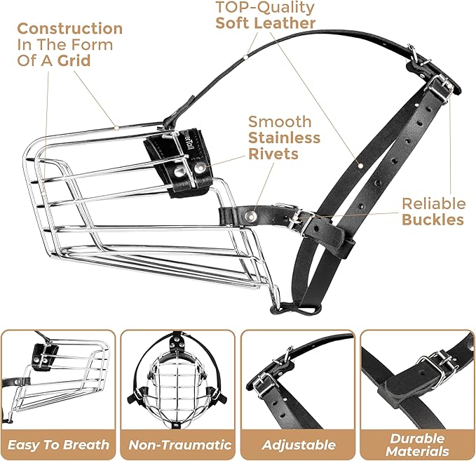 - Safe Materials: Expertly crafted from genuine leather and durable, polished steel, our cage muzzles for dogs provide both exceptional safety and superior construction.