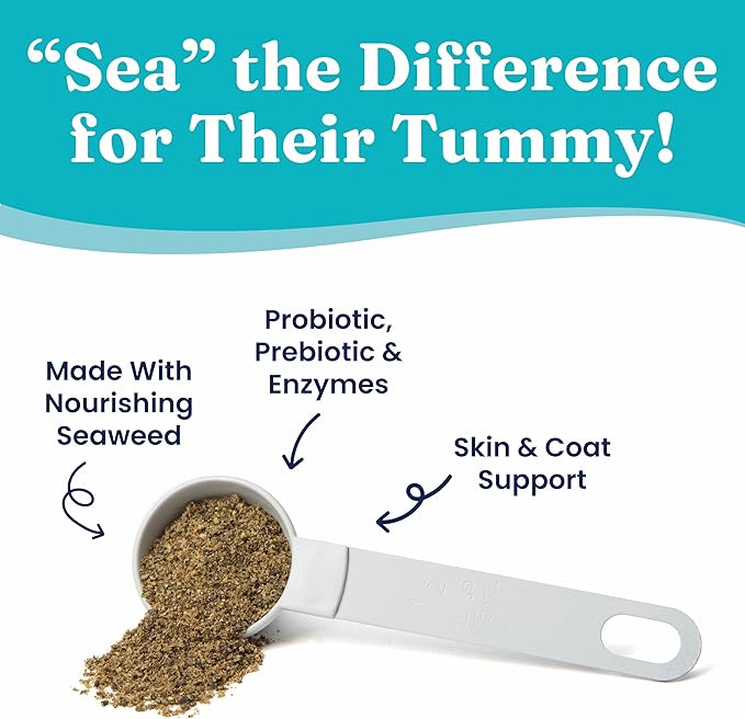 - Immune & Bowel Support – Powered by red, green & brown sea kelp, this dog probiotic supplement helps support immunity, nutrient absorption & bowel health. A great cat probiotic & dog probiotic for digestive health & cat constipation relief support