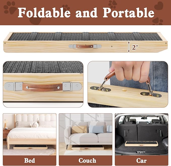 - EASY STORAGE AND PORTABLE: The Chuiendi Folding Pet Ramp is easy to transport or store in compact spaces, ready to use right out of the box with no assembly required, you can store it anywhere.