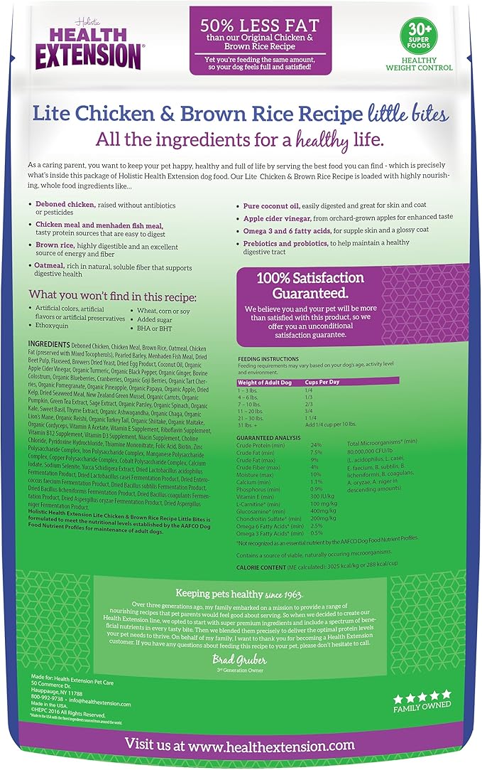 Health Extension Little Bites LITE Dry Dog Food, Chicken & Brown Rice for Small Breeds, Supports Healthy Weight, Digestion, Coat & Joint Health with Probiotics & Superfoods, 4 lb Bag (Pack of 2)