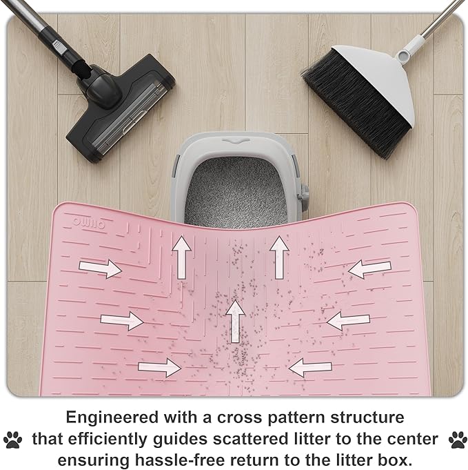 OHMO Cat Litter Mat Trapping Mat Premium Silicone 31.5x23.6 Pink, Waterproof and BPA Free Kitty Litter Box Mat, Easy Clean and Keeps The Floor Tidy
