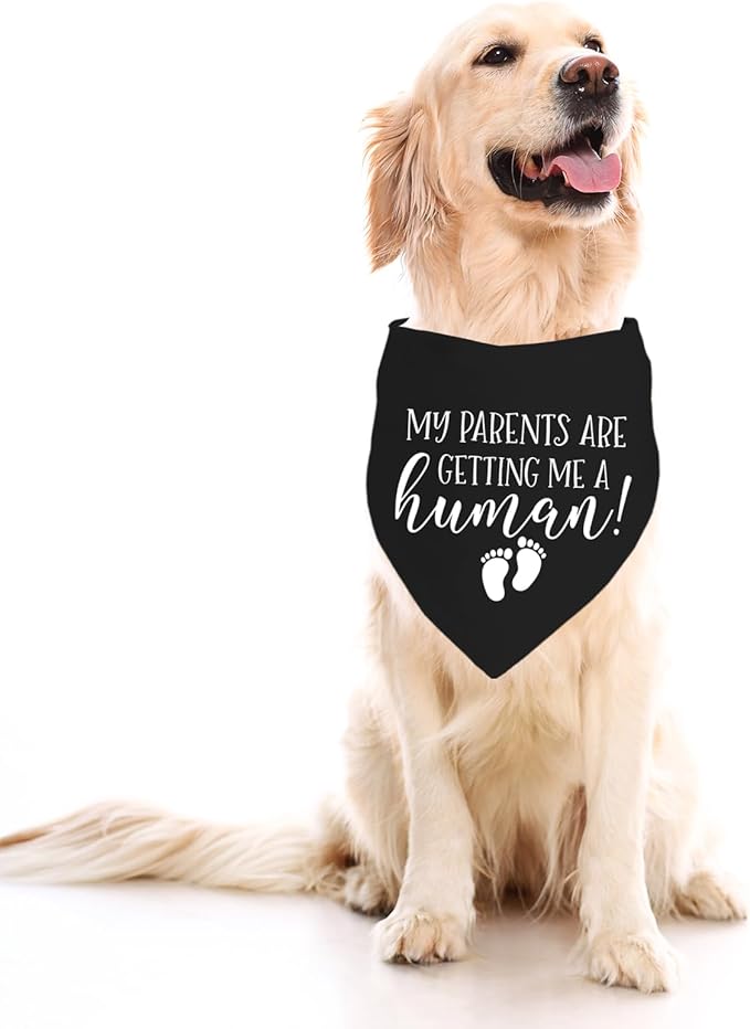 My Parents are Getting me a Human, Pregnancy Announcement Dog Bandana, Gender Reveal Photo Prop Pet Scarf Accessories,Pet Accessories for Dog Lovers (Black)