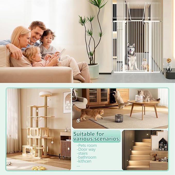 - Strong & Durable Design for Long-Term Use:Safety is our top priority with the extra tall pet gate. While adults can easily open it, it remains challenging for pets to maneuver. Constructed with thickened encrypted tube walls, this gate is both sturdy and durable, ensuring long-lasting protection and stability in your home.