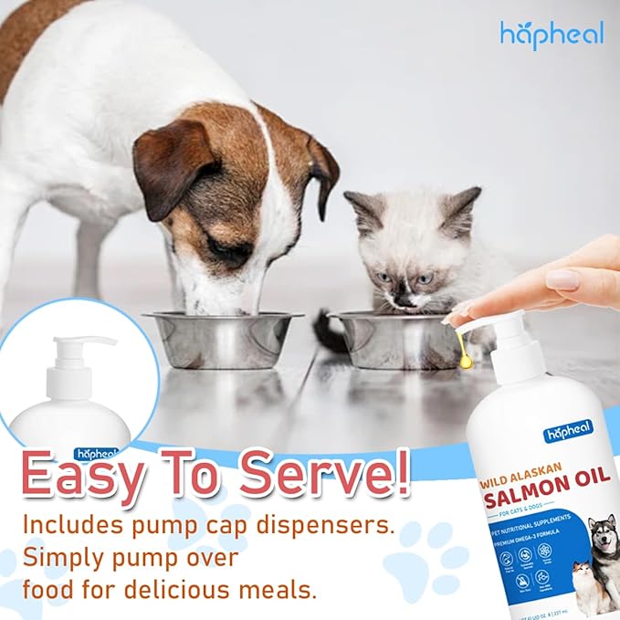 - Easy Fish Oil Supplement for Pets- Mess-free pump dispenses perfect doses (1-2 pumps/day). Enhances food palatability - even picky eaters love this salmon-flavored liquid supplement for dogs.
