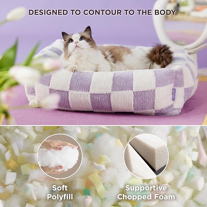 Lesure Cute Dog Bed for Small Dogs & Cats- Washable Puppy Beds,Cozy Rectangle Orthopedic Pet Sofa with Jacquard Shaggy Plush & Anti Slip Bottom,20x19x6inches