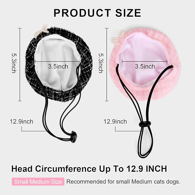 - Eleglant & Retro Design: The cat black beret hat with bow pearl accessory will make your pets look like a real princess on birthday party. The elastic rope and adjustable buckle will help the hat wear on your pet's head. The black lace square cat bandana make your pet's appearance more eleglant , full of holiday atmosphere.