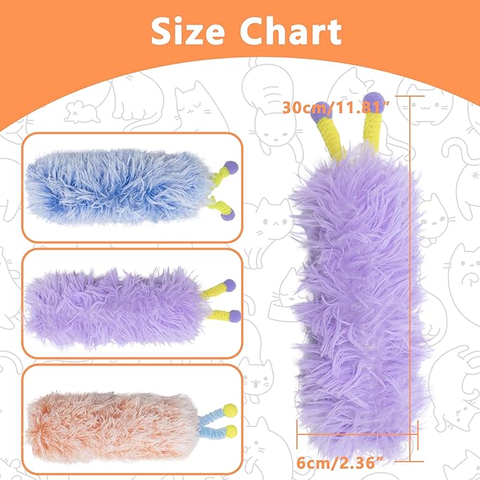 - Interesting Design: This cat toy adopts a hand sewn design without glue, allowing cats to safely engage in biting, scratching, and kicking games.plush material brings a softer touch,The caterpillar shaped design makes toys more interesting.