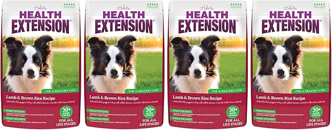 Health Extension Lamb & Brown Rice Dry Dog Food (1 lb / 0.45 kg) - Nutritious Free-Range Lamb Formula with Probiotics, Antioxidants & Omega 3 for Dogs with Sensitive Digestion (Pack of 4)