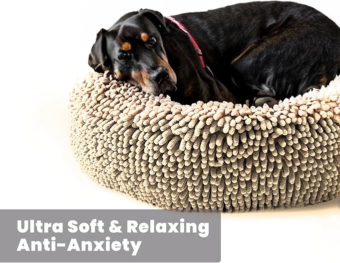 Muddy Mat® Cloud K-9 Bed for Dogs & Cats, Soft & Relaxing Donut Dog Bed, Chenille Material, Removable Cover, Washable & Dryer Safe–Beige Small(25'x25')