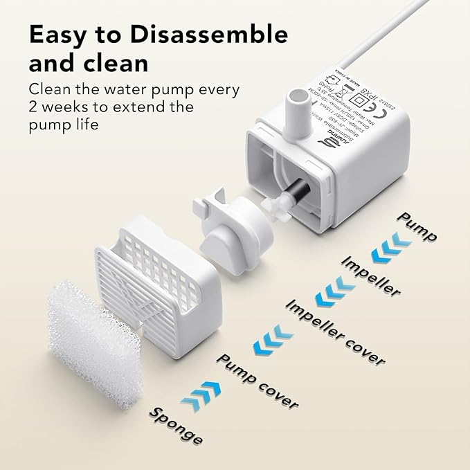 - To maintain clean and healthy water, replace the carbon filter every 1–2 weeks—weekly during warmer months. The foam filter should be replaced every 2 months. Regular replacement helps ensure fresh water for your pet and keeps the fountain working properly