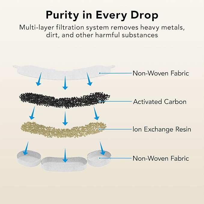 - 4-Stage Filtration for Cleaner Healthier Water - Made with premium materials, the 4 filter layers (non-woven fabric, ion-exchange resins, activated carbon and sponge) effectively capture impurities like fur, heavy metals, and odors. The continuous flow boosts oxygen, keeping water fresh and healthy