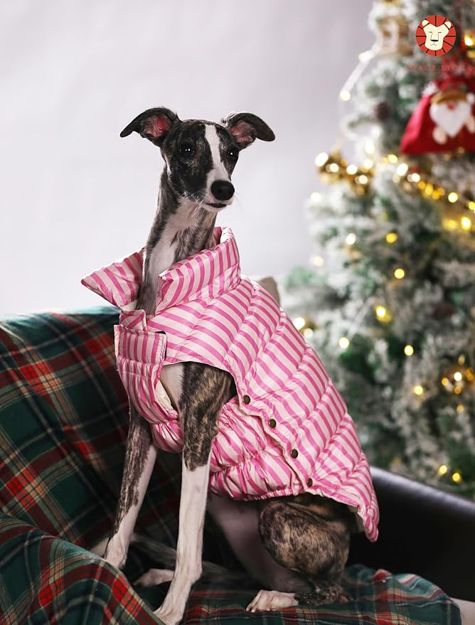 SPACE LION Puffer Jacket, Down Winter Coat, Waterproof, Windproof, Lightweight Jacket, Adjustable Fit for Small Dogs(Pink,S)