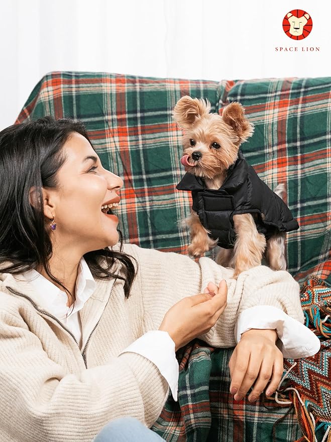 SPACE LION Puffer Jacket, Down Winter Coat, Durable Outdoor Coat for Cold and Windy Conditions, Waterproof, Windproof, Lightweight Jacket, Adjustable Fit for Small Dogs(Black,XS)