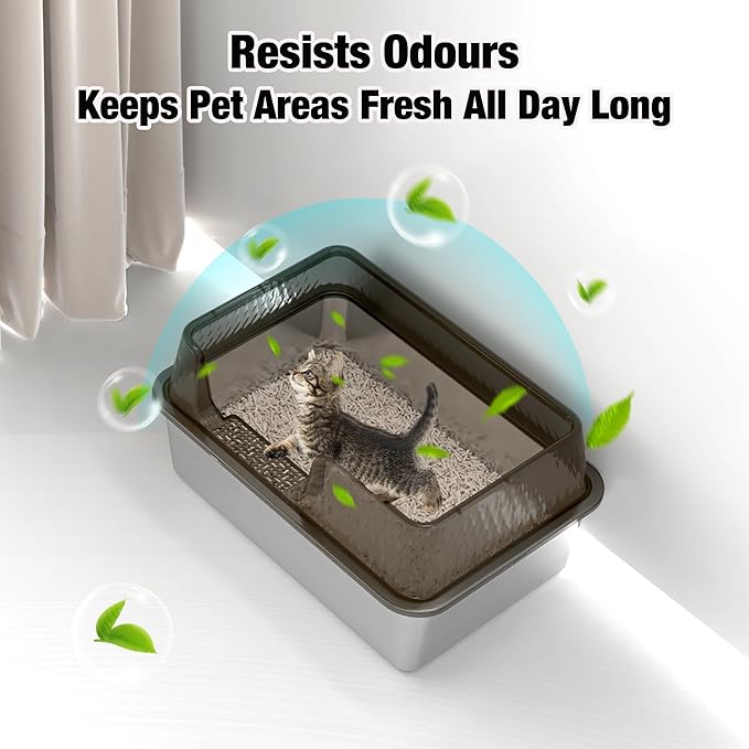 - Large Capacity: This stainless steel litter box with lid features an extra-large interior space, suitable for medium to large cats (19.6L'' × 13.77W'' × 7.87H''), ensuring they have enough to move and can use it for long periods without frequent litter changes.