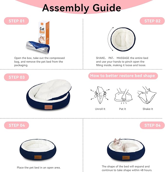 - NOTE!!We Pet bed packed in a compression bag,short plush material easy compression and easy recovery, When you receive the product, you can turn over the cat bed several times and keep for 2-3 days to restore shape, then you can use it for your Love pet!