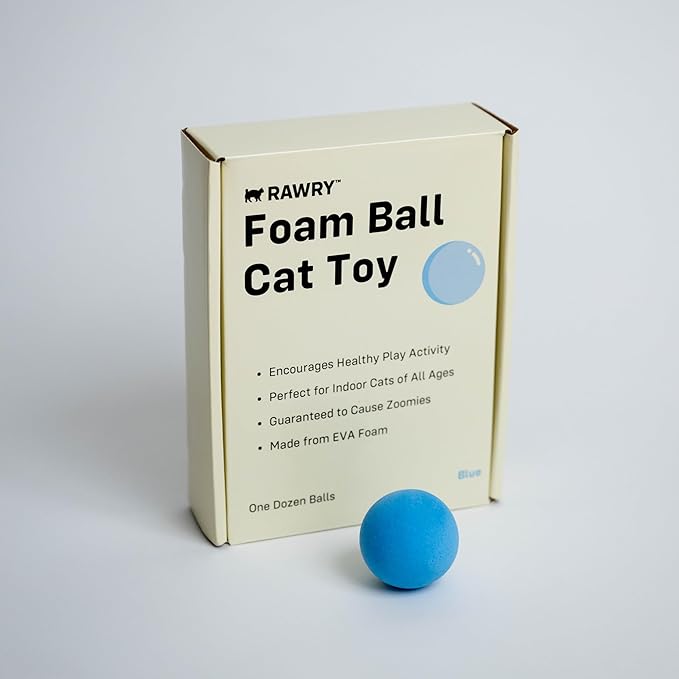 Rawry Foam Ball Cat Toy Set – 12 Foam Balls for Indoor Cats & Kittens | Soft, Durable, Bouncy Balls for Playtime & Exercise | Lightweight, Non-Toxic, Easy for Cats to Chase (12 Pack, Blue)