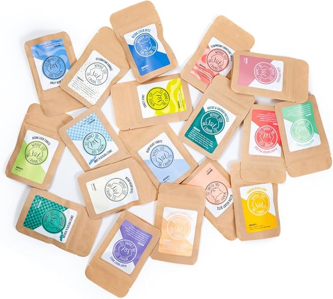 - SAMPLE PACK: Help your pup find their favorite treat. Each sample pack includes 2 treats of the following flavors: Peanut Butter Pretzels, Minty Breath Bones, Celebration Cookies, Strawberry Shortcake, Pumpkin Canine Cookies, Greens & Cheddar Pretzels, and Berry Boost Bones.