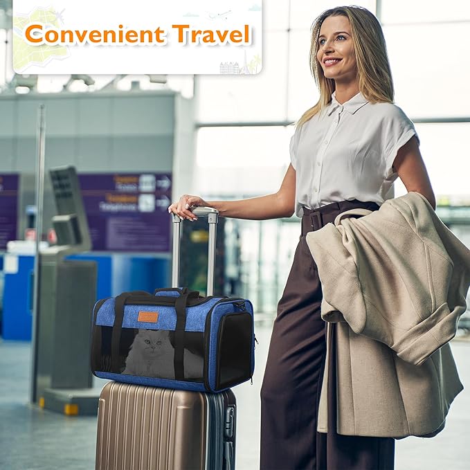 PETUX TSA Approved Pet Carrier in Cabin, 17"x11"x9.5" Soft Cat Carriers for Small Cat up to 12 lb, Top-Open Portable and Breathable Pet Carrier Airline Approved for Travel and Vet Visit, Blue