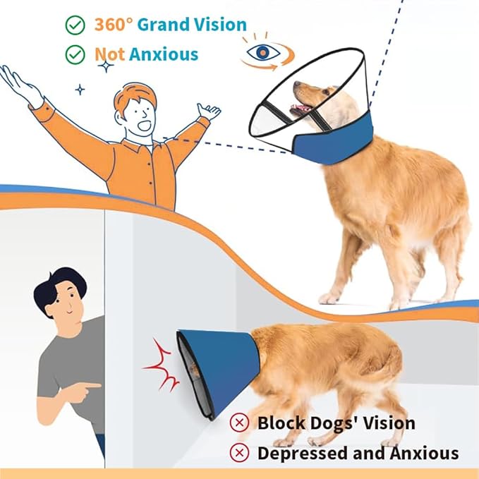 - Clear Edge Visibility: To help reduce your dog's anxiety, we've designed the dog cone collar with a clear PVC edge; Thiscone for dogs allows your dog to maintain their peripheral vision, making the healing process less stressful and confusing for them