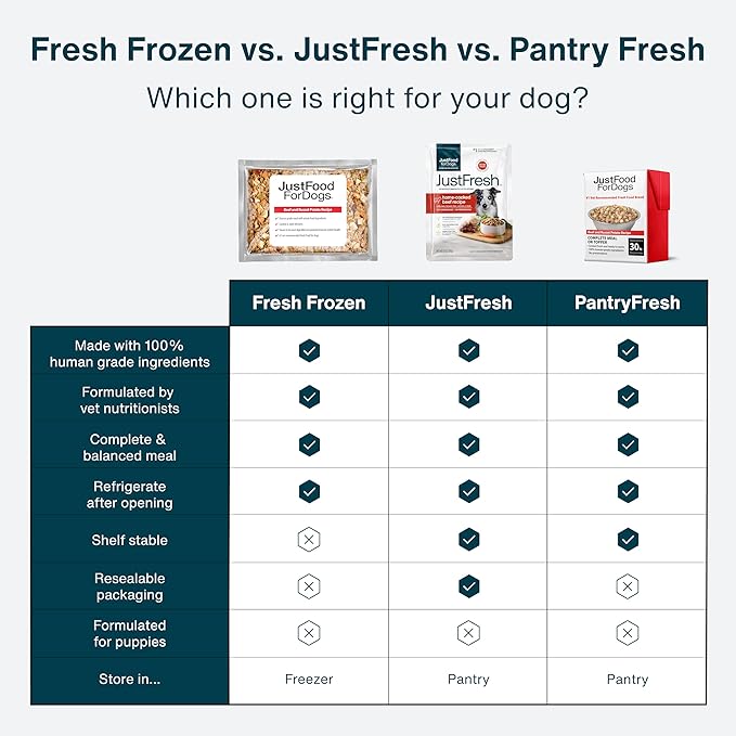 - USE AS A FULL MEAL OR DOG FOOD TOPPER FOR PICKY EATERS: While JustFresh is formulated as a complete and balanced meal, our soft dog food can also be used as dog food toppers for dry food for those picky eaters.