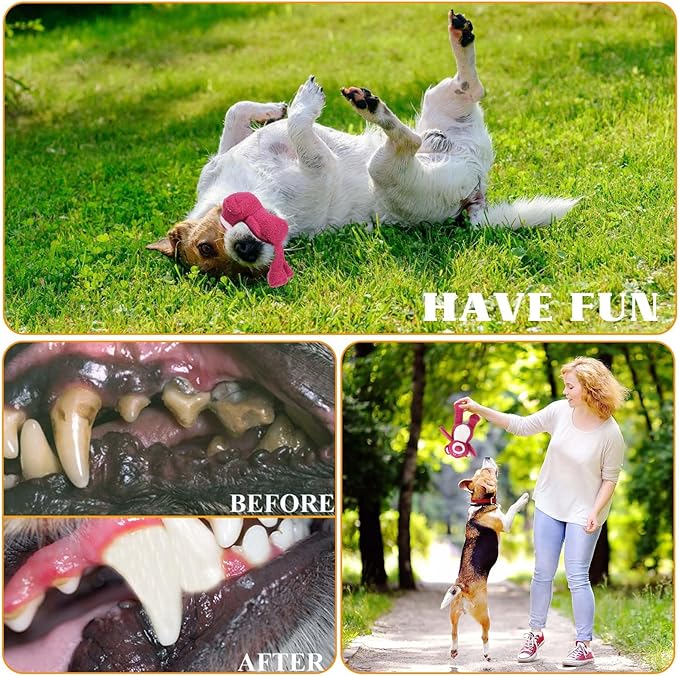 - đăTEETH CLEANINGăThe soft plush can rub down dogsâ mouth, deeply cleaning their teeth, keeping their breath fresh, controlling the growth of dental tartar and plaque. And itâs easy to clean and dry the plush dog toy