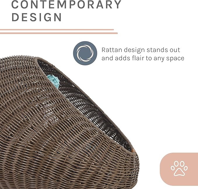 - Stylish Rattan-Style Design: The Nala Cat Bed features a rattan-style wicker exterior, providing a chic and modern alternative to traditional pet beds.