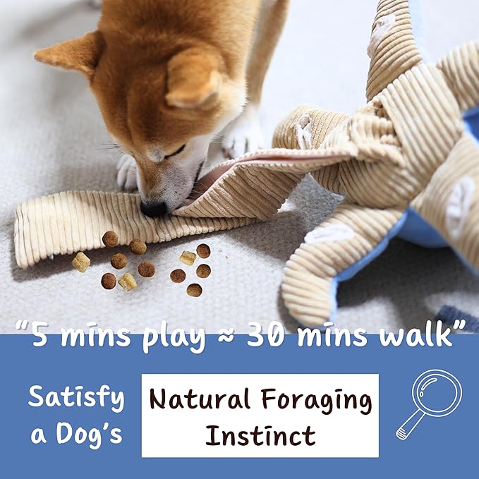 - 🐶【Snuffle & Puzzle Training】: Except for attractive look, this snuffle dog toy has a long pocket to hide the treat to stimulates their mind and nose, which can be rolled up, allowing your dog to open it by sniffing and exploring to get rewards. This can exercise your dog's intelligent, delivering endless surprises and rewards.
