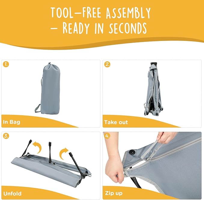 - COMPACT & FOLDABLE: This foldable dog bed features a 22"x8" folded size perfect for traveling & camping; zip it up in 15 seconds for a comfortable outdoor dog bed for your furry friend.
