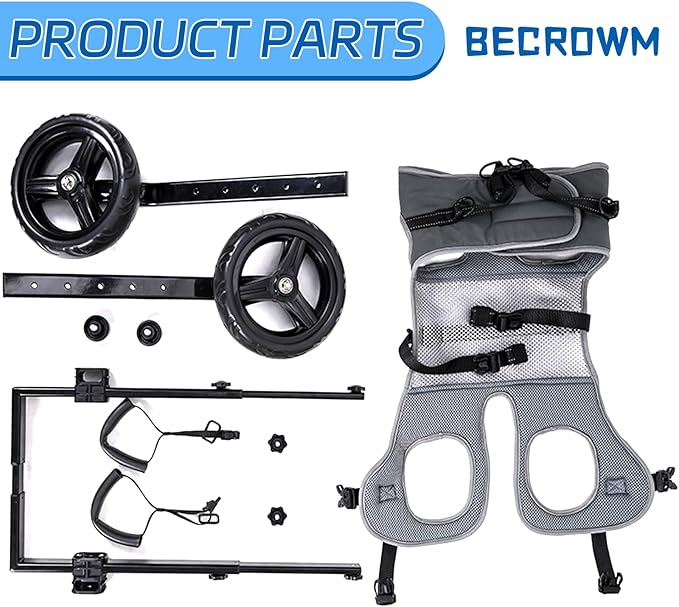 - Easy to install】: This adjustable dog wheelchair for back legs is easy to assemble and lightweight, making it perfect for travel. With convenient buckles for leashing and an adjustable height, width and length, this dog wheelchair will fit your pet perfectly.