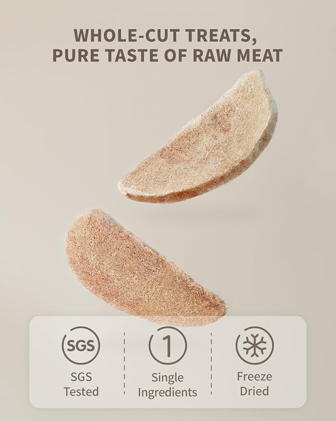 - 【Low Crumble, Less Mess】Thanks to our premium freeze-drying process, these treats feature visible meat fibers and a full-bodied texture—offering a cleaner feeding experience with less dust and crumbs. Your pet gets pure, satisfying bites every time.
