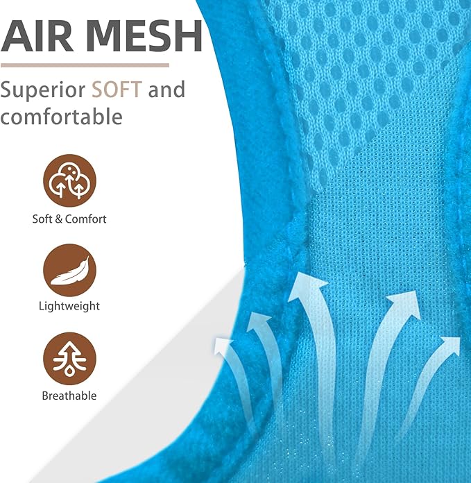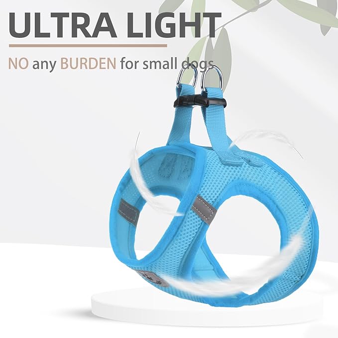 - COMFORTABLE MATERIAL, DAILY WALKING, FOUR SEASONS WEARING: - The harness is made of durable polyester, and it's adopted with an air-mesh design. The whole harness is very soft, lightweight, and breathable. Even if your dog wears it all day, he won't feel any discomfort. For daily walking or running, it is a very easy thing to do. Besides, this is a four seasons harness, it keeps the dog cool on hot days and keeps the dog warm on cold days