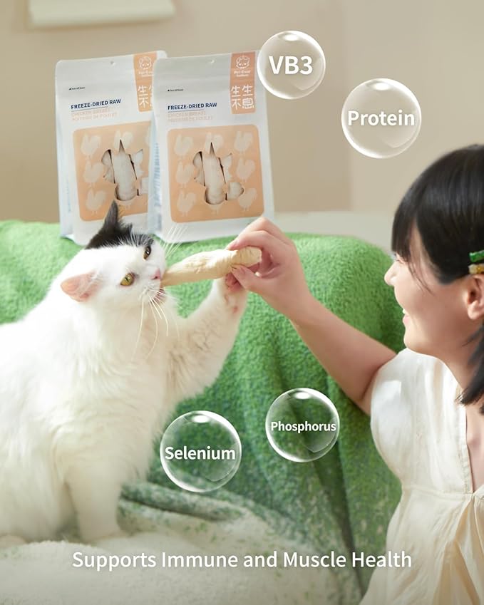 - 【Support Immunity & Muscle Health】Packed with high-quality protein, vitamin B3, phosphorus, and selenium, freeze-dried chicken breast helps maintain lean muscle and strengthen the immune system. A gentle, easy-to-digest treat ideal for everyday wellness.