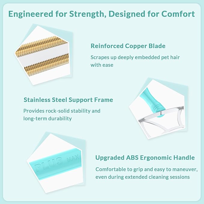 - 2X LARGER TOOL FOR QUICK CLEAN-UPS——The oversized scraper is perfect for tackling large areas like carpets, pet beds, and stair risers, removing stubbornly trapped pet hair with unmatched efficiency. Save time while keeping your space spotless!