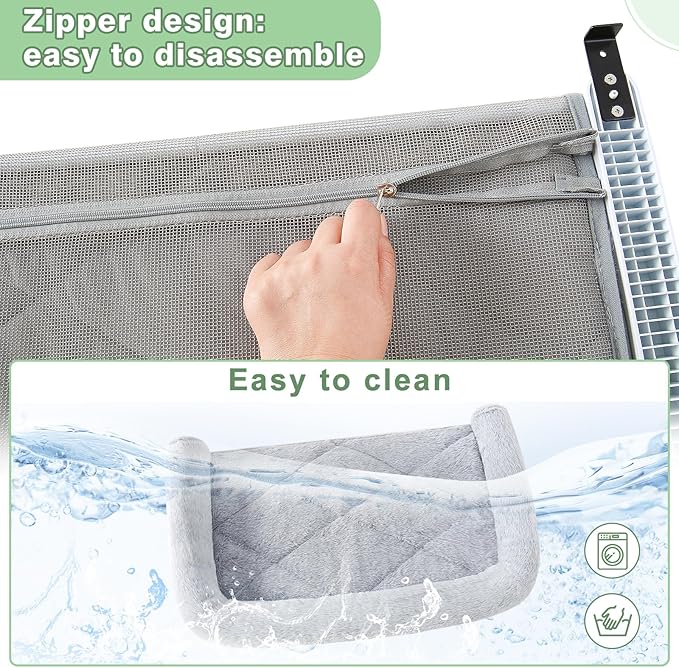 - Tool-Free Setup – No drilling or suction cups required! This cat bed features an upgraded hook-and-bracket system with adjustable clamps that fits most windowsills. Quick to set up, and easy to move between windows, bedsides, or cabinets