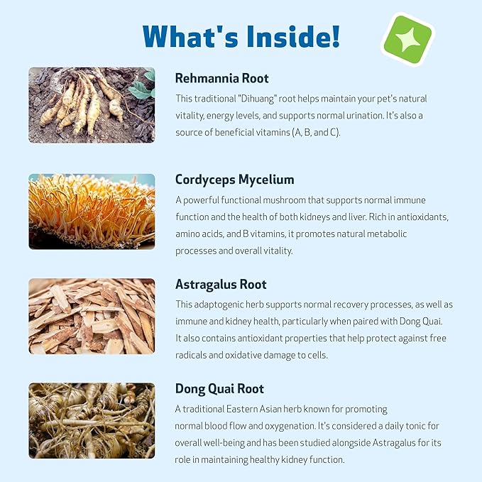 - πΏ HERBAL KIDNEY WELLNESS β Gentle yet effective veterinarian-formulated blend of herbs traditionally used to help maintain normal kidney function. Supports the bodyβs natural balance while contributing to overall vitality and well-being in cats of all ages.