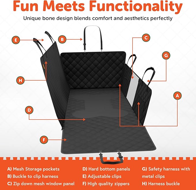 - ADD PERSONALITY TO YOUR CAR and invite your pet to hop right in by placing a stylish bone design car dog hammock for the back seat. Whether itโs an SUV, pickup truck, or small car, this hard bottom dog car seat protector, sized 51" x 24", will surely fit perfectly